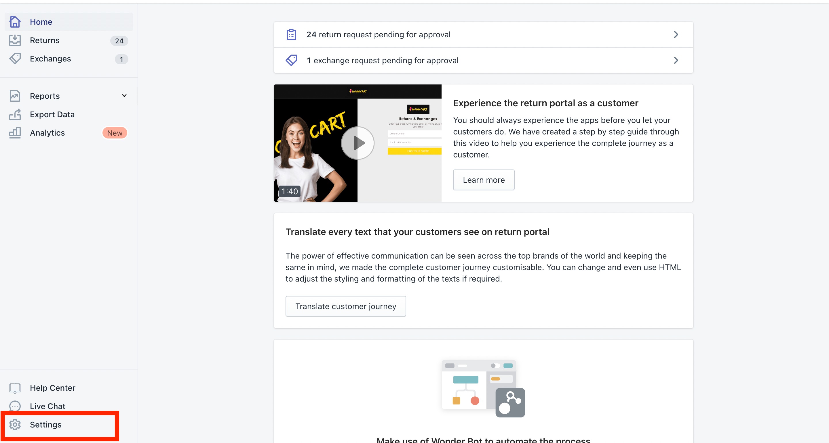 Tip:- To retain more customers, you can offer them 10-20% extra credit if they opt for Store credit instead of a cash refund. The translation can be changed from "Settings > Translations".
