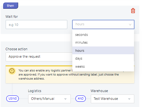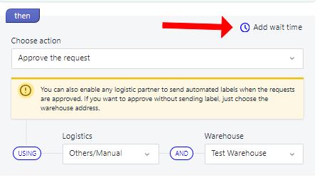 One of the key features of Wonder Bot Automation is the ability to add a wait time before processing return requests. Decide on an appropriate wait time for your workflow; for instance, you can set a wait time of 15 minutes. This means that when a return request is initiated, the Wonder Bot will wait for 15 minutes before taking action.