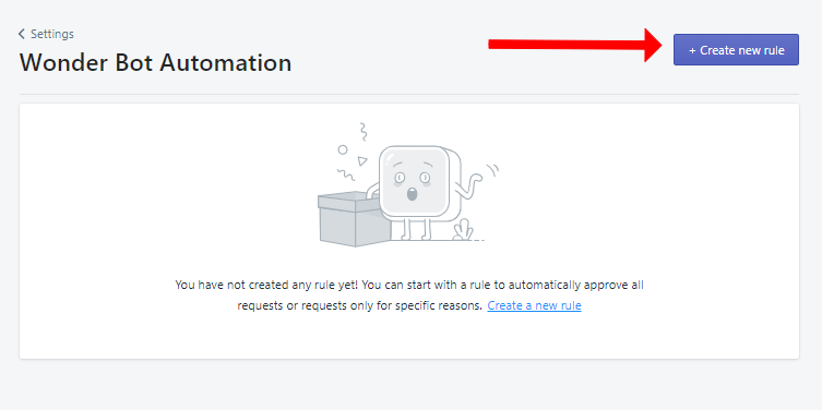 Within the Wonder Bot Automation settings, create a new rule tailored to your specific needs. Specify the conditions under which you want the automation to apply. For example, you might set conditions based on the type of product, reason for return, or any other relevant criteria.