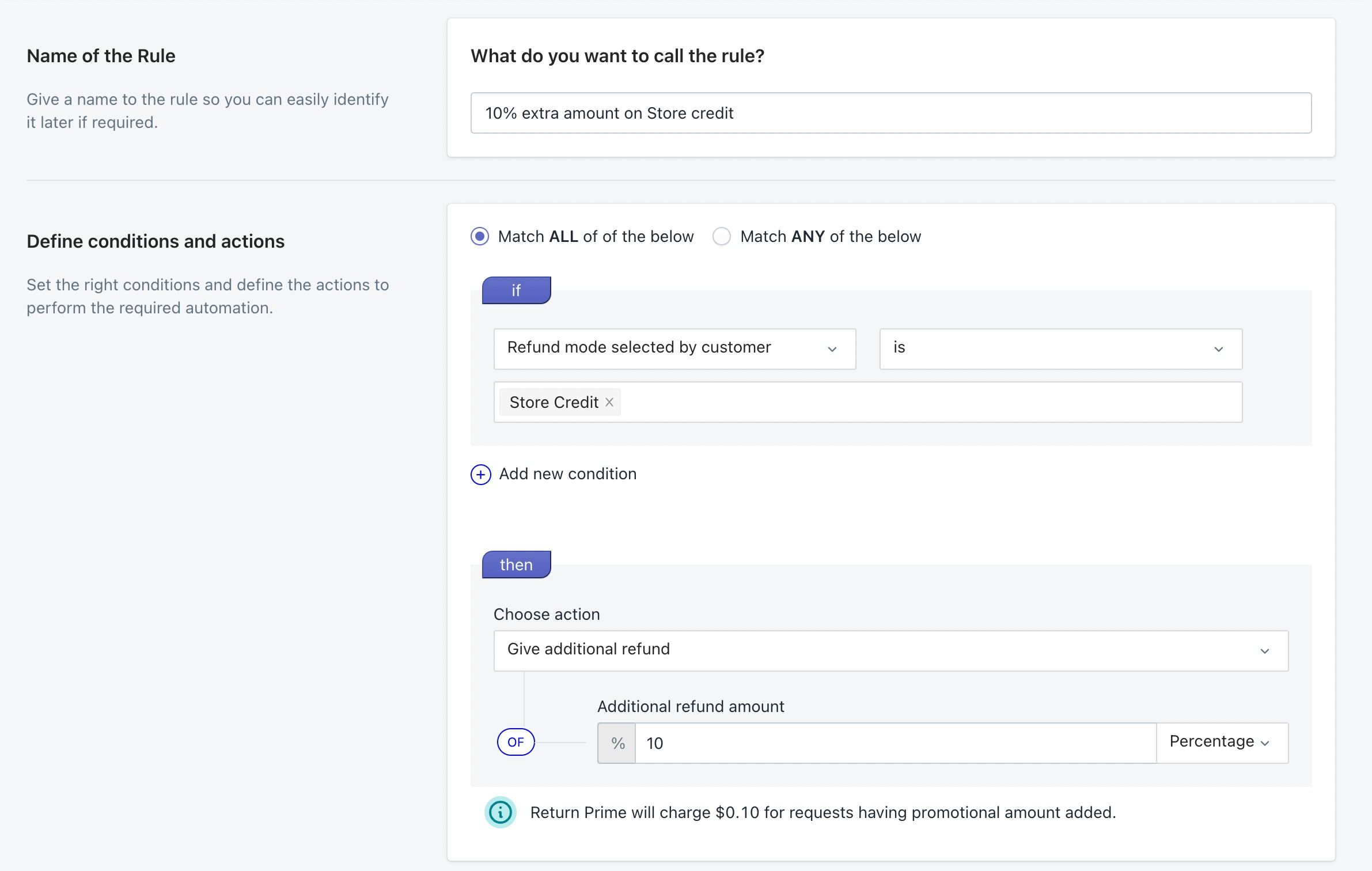 Once this is done then save the rule and you are ready to go. This will help you reduce the refund rate to the original payment source and increase the lifetime value of the customer as it will retain the customer for you.